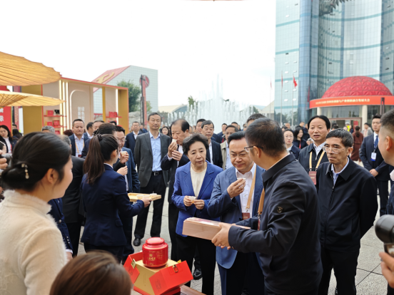 会议期间,四川省人大常委会副主任祝春秀,中央候补委员,中国工程院院士,湖南师范大学副书记、校长,宜宾市茶产业研究院院长刘仲华等领导专家行至集团展区巡视交流。集团工作人员向来宾敬奉新品红茶,并就企业发展与产品特色作简要汇报。